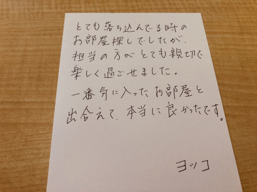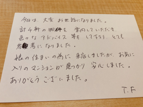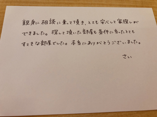 暑い中、毎日毎日沢山のご来店、本当に本当にありがとうございます!今年の3月に淵野辺の大学にご入学され、お一人暮らしを始められた方がお母様と一緒にお部屋探しにいらっしゃいました。今のお住まいは実際に住んでみると、日当たりがあまり良くなく、通学にも思った以上に時間がかかる事がわかり、夏休みを利用してお引越しする事を決断されたとの事でした。お部屋の良い所・悪い所、通学路や環境などもしっかりと確認して頂き、大満足して頂けるお部屋が見つかりました♪まだまだ始まったばかりの大学生活が快適でますます有意義なものとなりますよう、スタッフ一同心より願っております。どのような事でも遠慮なくご相談下さいませ☆