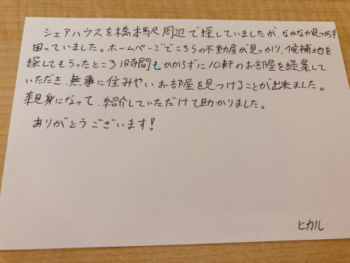 毎日毎日沢山のご来店、本当に本当にありがとうございます。ご友人とのルームシェアができるお部屋を探していらっしゃるお客様がご来店下さいました。今までいくつも不動産会社をまわられたそうなのですが、なかなか良いお部屋に巡り合えずご苦労されていらっしゃいました。海外ではよく耳にするルームシェアですが、まだまだ日本では受け入れて下さる大家様が少ないのが現状です。ご条件に合うお部屋を全てピックアップして、1件1件ルームシェアを受け入れてもらえないかどうか交渉をした結果、お客様に大変喜んでいただけるお部屋が見つかりました☆日本の賃貸物件のあり方も、今後少しずつ変化していくのでしょう。時代に合ったお部屋探し、全力でお手伝いさせて頂きます!どのような事でも遠慮なくご相談下さいませ♪