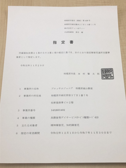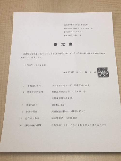 12月1日より相模原市の指定を受けた児童福祉施設を開所させて頂きました。発達障害をもつ、または疑いのあるお子様に療育を行い、改善方向へ導く施設となります。就学前のお子様を受け入れる「児童発達支援」と就学後のお子様を受け入れる「放課後等デイサービス」の両方の機能を持つ多機能型施設です。