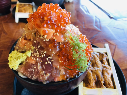 昨日は定休日でしたので、伊豆までドライブしてきました!前から気になっていた銀河高原ビール本店へ。お目当ては「漁師丼」です!予想以上のボリューム!!いくらもウニもたっぷりで美味しかったです☆お席からは海も見え、伊豆にきたー♪と実感できます。こんなに食べたのだから、少し運動しなければ!という事でランチの後は、城ヶ崎海岸のピクニカルコースへ。晴天に恵まれ、絶景です。有名な吊橋では、大学生と思われるグループがワーワーキャーキャー楽しそうに渡っていました。カワイイ♪渡り切ると、海岸沿いに散歩道が続きます。冬の海らしく、歩道の近くで波が砕け迫力満点!森林コースは片道20分くらいの道のりですが、アップダウンと階段がありお散歩というよりはハイキングな感じ。運動もしたことだし次は温泉!という事で、「赤沢温泉」へ。ここ、お気に入りスポットなのです。インフィニティー露天風呂があり、太平洋と繋がっているような感覚になります。時間が立つのを忘れ海と空に癒やされました☆まだ明るいから山越えしよう!富士山きれいかも!という事になり、伊豆スカイラインと箱根ターンパイクを使って帰宅するコースを選択。大正解!夕焼けに浮かび上がった富士山に会えました!美味しいご飯に癒やしの温泉、美しい景色と伊豆の全てを満喫し、楽しい休日となりました♪健康と平和に感謝です。