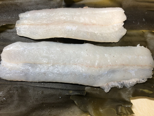 美味しいお魚が食べたくなった時には、南橋本の角上魚類さんに伺います☆鮮度抜群で種類も豊富!どれも全部美味しそうです。何を作ろうか、魚さん達の前を行ったり来たりしましたが、ヒラメ様に決定!!お店の方にお願いするとおろして下さいます。今回は昆布締めを作る事にしましたので、5枚おろしにしてもらい、皮はひいてもらいました♪ここまで下処理をして頂けば、あとの作業はほんの少しです。YouTubeでいくつかレシピを見ていたところ、昆布を蒸しておくと良い!という動画があったので、試してみる事に。確かに包みやすいですし、魚の身にしっかりと密着している気がします。冷蔵庫で2日寝かせました。その間に運良く伊豆の生わさびも手に入りましたので、鮫皮ですりおろし添えました。お醤油は付けず、わさびのみ。昆布の香りと旨味がヒラメにしっかり移り、美味しく出来上がりました♪今度は何を作りましょう。また近々伺わなくては☆