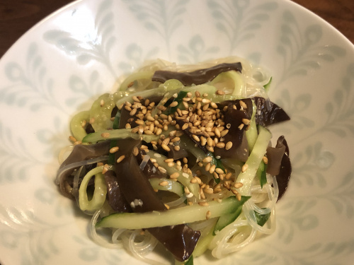 生きくらげときゅうり、春雨の酢の物。さっぱり☆