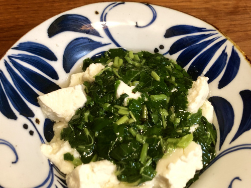 アシタバの出汁冷奴。栄養満点!ひんやりツルン♪いくらでも食べられます。
