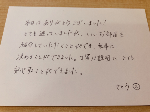 毎日毎日たくさんのご来店、本当に本当にありがとうございます!先週末はカップルさんが多数ご来店下さいました♪毎年恒例、幸せのお裾分けを頂けるシーズンです☆最近の傾向として、2LDK以上のお部屋を選び、それぞれの方が1部屋ずづ寝室として使われたいというお話をよく伺います。お互いのプライベートを尊重しつつ、一緒に過ごす時間も大切にしたい。そんなカップルさんが増えているように思います。時代の流れとともに、「当たり前」な事や「常識」も変わって行くのでしょう!ニーズや思考の変化に素早く対応し、最適な提案ができるよう、スタッフ一同全力でお部屋探しのお手伝いをさせて頂きます♪どのような事でも遠慮なくご相談下さいませ!