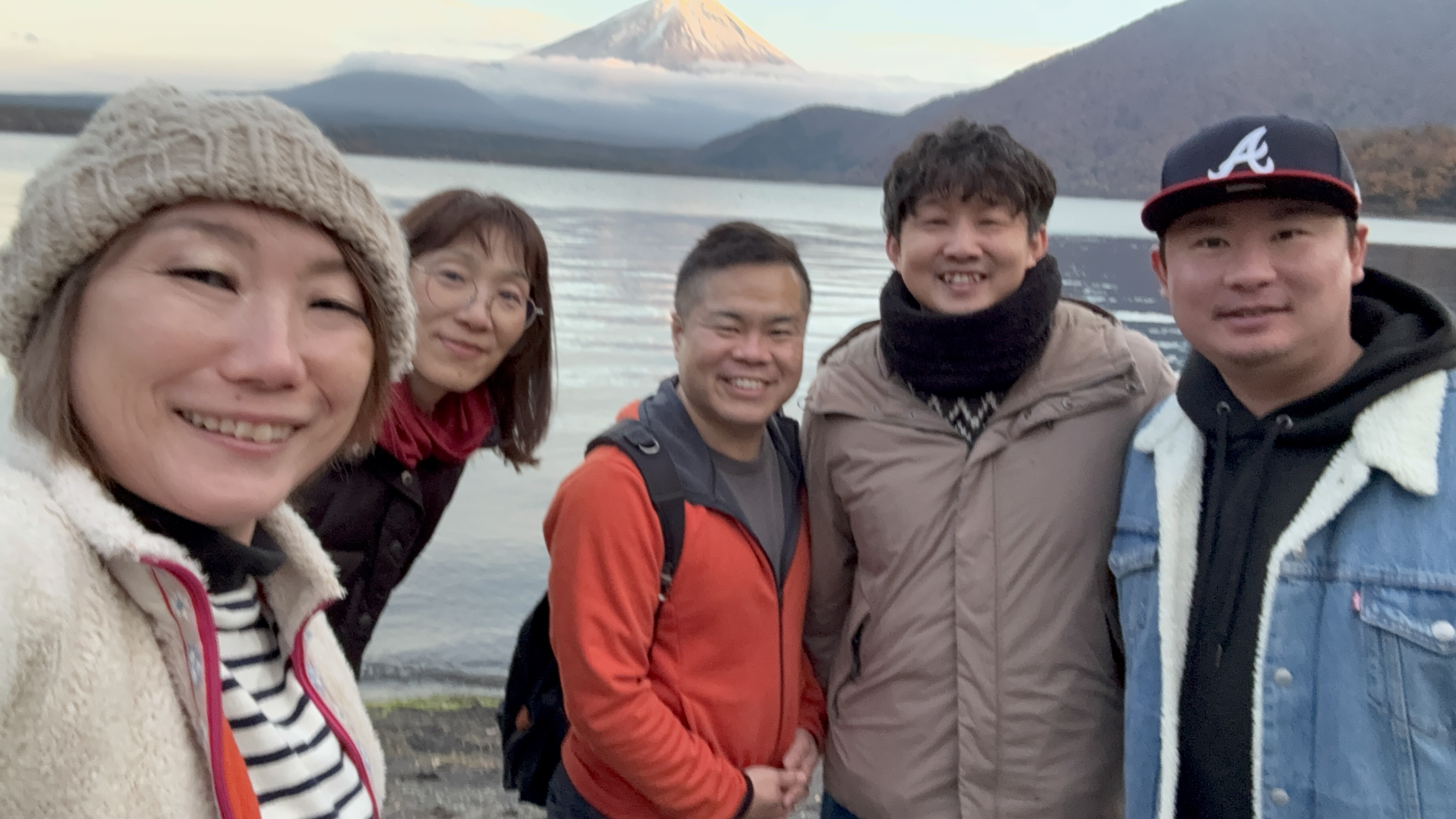 弊社の代表はびっくりするほどの晴れ男!今回もそのパワーを全開にしてくれたお陰で富士山もバッチリ姿を現してくれました⭐︎まずは旧千円紙幣に描かれていた逆さ富士と湖の風景の名所にて♪
