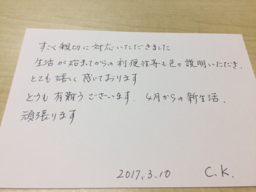 毎日毎日たくさんのご来店、本当にありがとうございます!4月からの転勤辞令が出始め、新たな勤務先の近くにお部屋を探されるお客様にも多くご来店頂いております。全く知らない土地でのお部屋探しはご心配やご不安も多い事と思います。スタッフ一同、精一杯お手伝いさせて頂きます☆なんでもご相談下さいませ♪