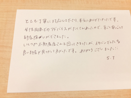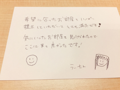 毎日毎日たくさんのご来店、本当に本当にありがとうございます!お客様のご要望をお伺いさせて頂き、場所の変更のご提案をさせて頂いたり、間取りの変更のご提案をさせて頂き、「なるほど!その発想はなかったです!!!」と喜んで頂く事が多々あります。プロ目線でしっかりとご要望にお答えできるお部屋をお探し致します!どのような事でも遠慮なくご相談下さいませ。
